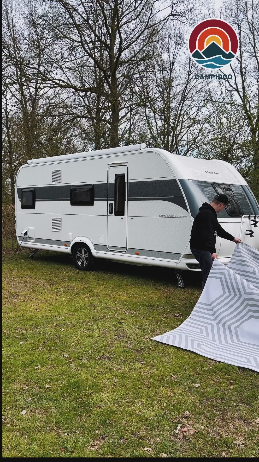 The wind apron and the carpet are made in one piece from PVC mesh material , making it the ideal summer carpet. Thanks to the wind-permeable apron, the cool air under the camper flows perfectly into the awning and air-conditions it, but still keeps animals and, in the wind, flying leaves at bay.