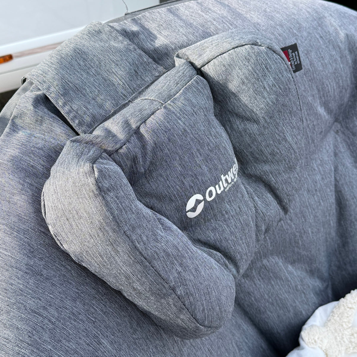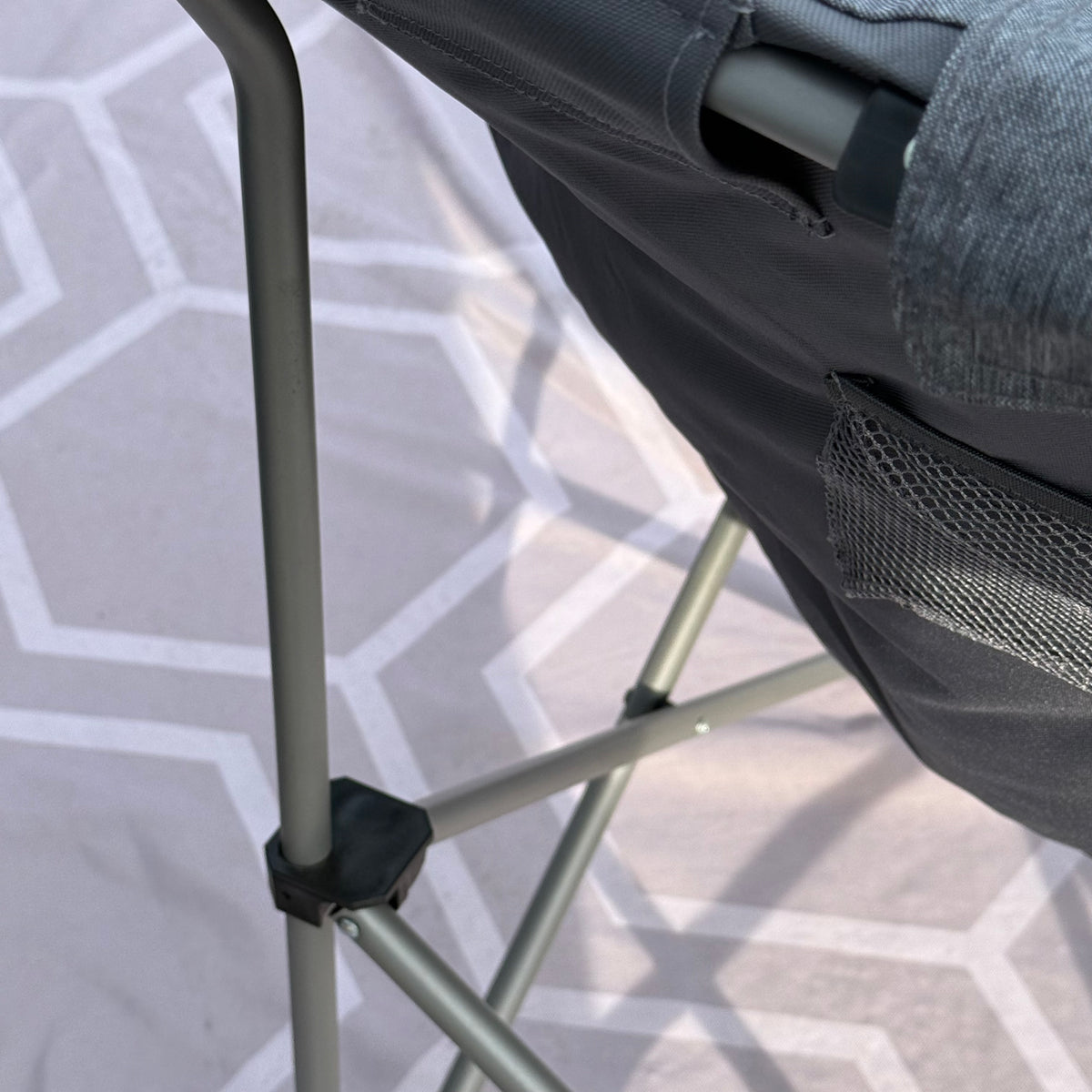 Das extra weich gepolsterte Kopfteil sorgt für perfekten Halt und maximalen Komfort beim Zurücklehnen. Ideal für lange Abende am Lagerfeuer oder entspannte Stunden im Garten.