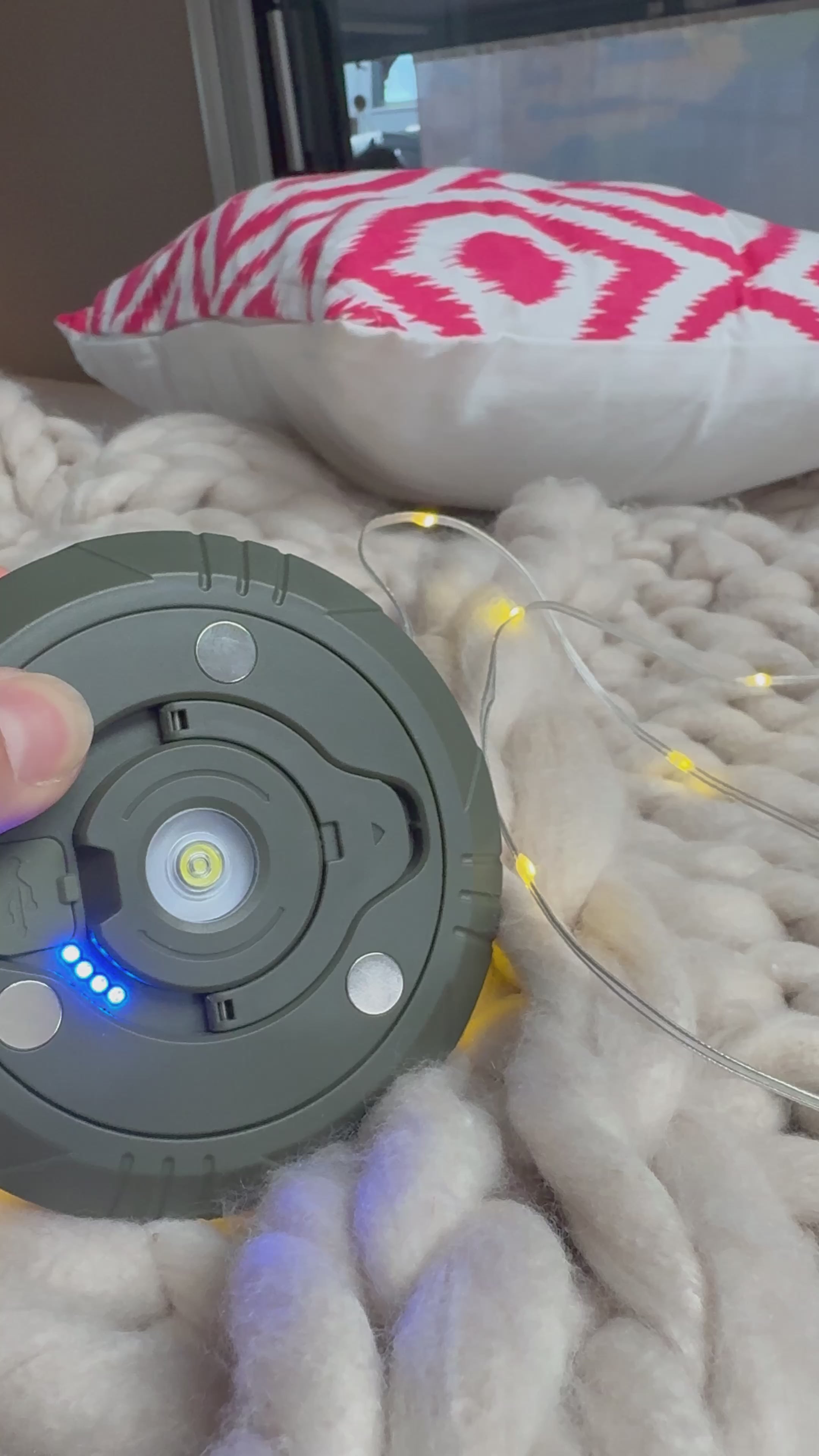 Diese innovative All-in-one Campinglicht ist nicht nur eine Campinglichterkette, sondern auch Taschenlampe, Notbeleuchtung und Powerbank - alles in einem Gerät.