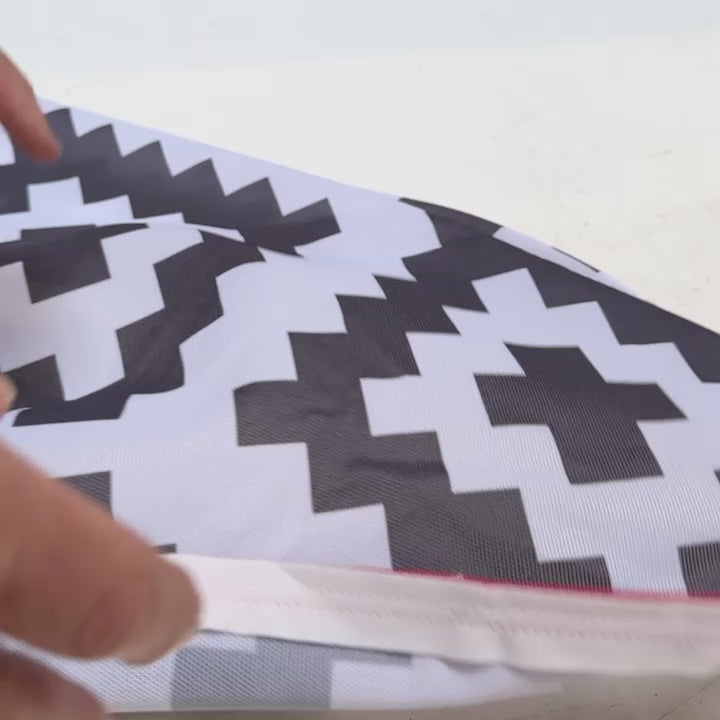 Waschbarkeit: Sowohl die Windschürze als auch der Teppich selbst sind bei 40°C waschbar, um Frische und Sauberkeit zu gewährleisten. Bitte bedenke dass Du ggf. Hilfe von einer Wäscherei brauchst - die Waschmaschinen im Hausgebrauch arbeiten aufgrund der ökonomischen Vorschriften mit zu wenig Wasser. Der Teppich in der Trommel wird also bei grösseren Teppichen nicht mit ausreichend Wasserdurchspült.