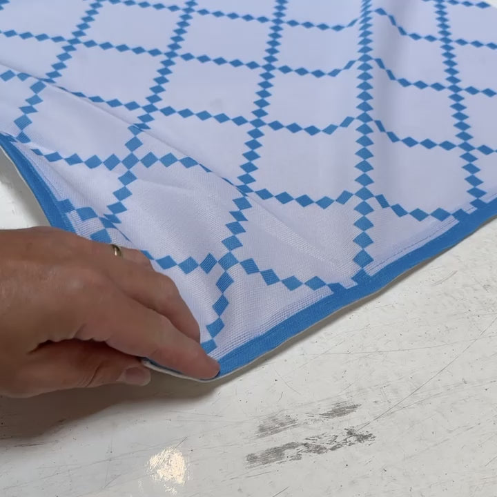 PREMIUM Vorzeltteppich mit abnehmbarer Windschürze - "Karo Blau Grau"