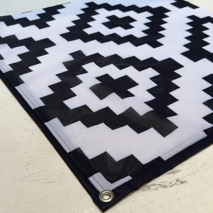 PREMIUM Vorzeltteppich mit abnehmbarer Windschürze - "Paris Schwarz Weiss"