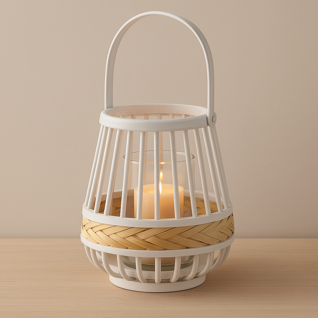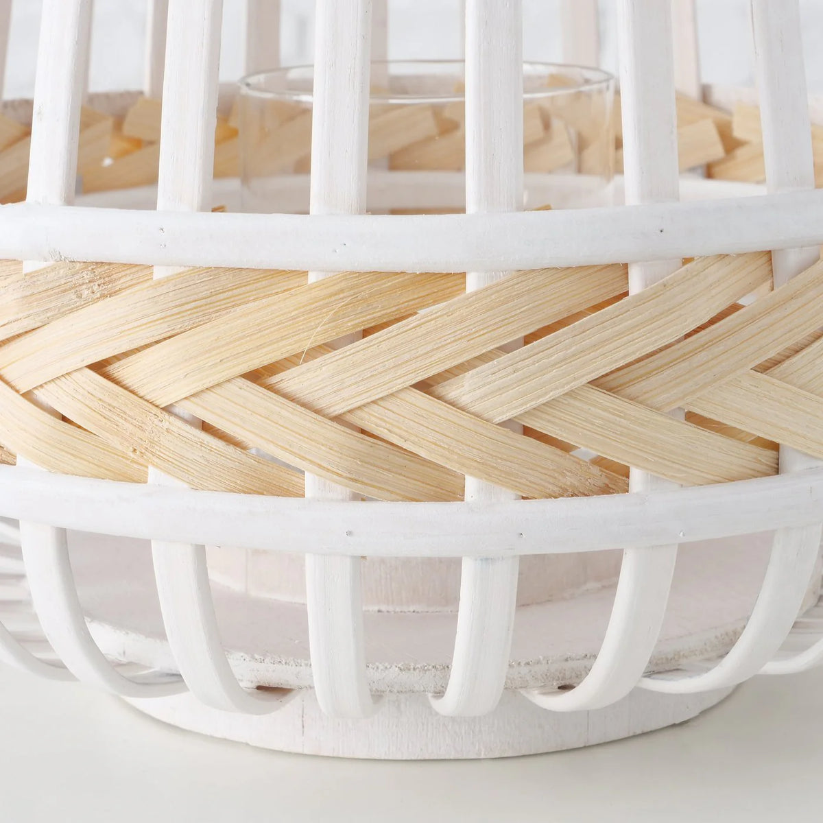Das sorgfältig geflochtene Bambusmuster verleiht dem Windlicht Elaine seinen einzigartigen Look. Jedes Detail zeigt die hochwertige Handarbeit und macht das Windlicht zu einem stilvollen Highlight mit natürlicher Note.